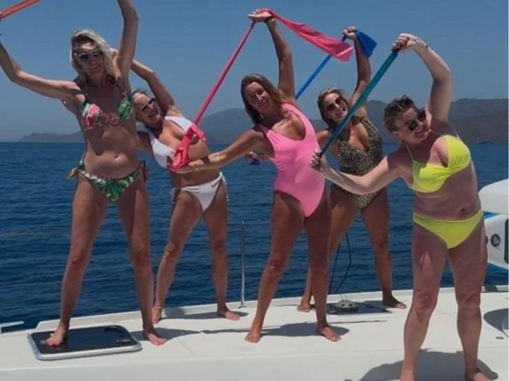 Pool Pilates and sunset meditation.